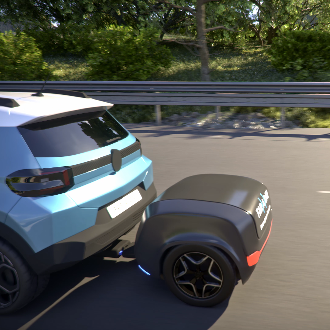 Le Faraday est une batterie externe tractée parfaite pour les longs trajets de vacances. Vous pouvez partir le coffre plein et 4 passagers, et continuer à tracer votre route.